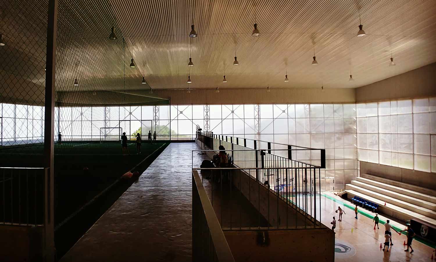 The "shed" structural solution proposed was the main design concept. Thanks to the metallic truss structure, high spam were able to be reached. Its dynamic shape emphasized the sports' function of the project.